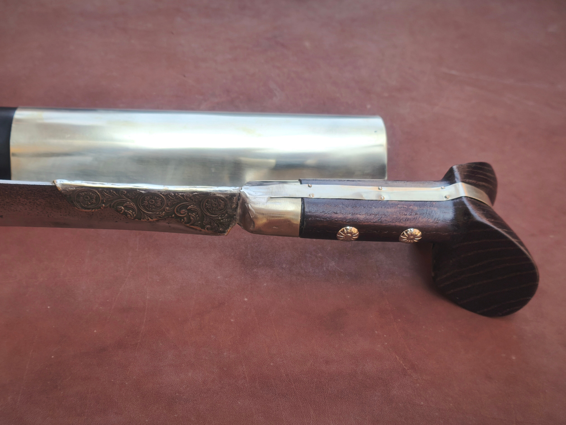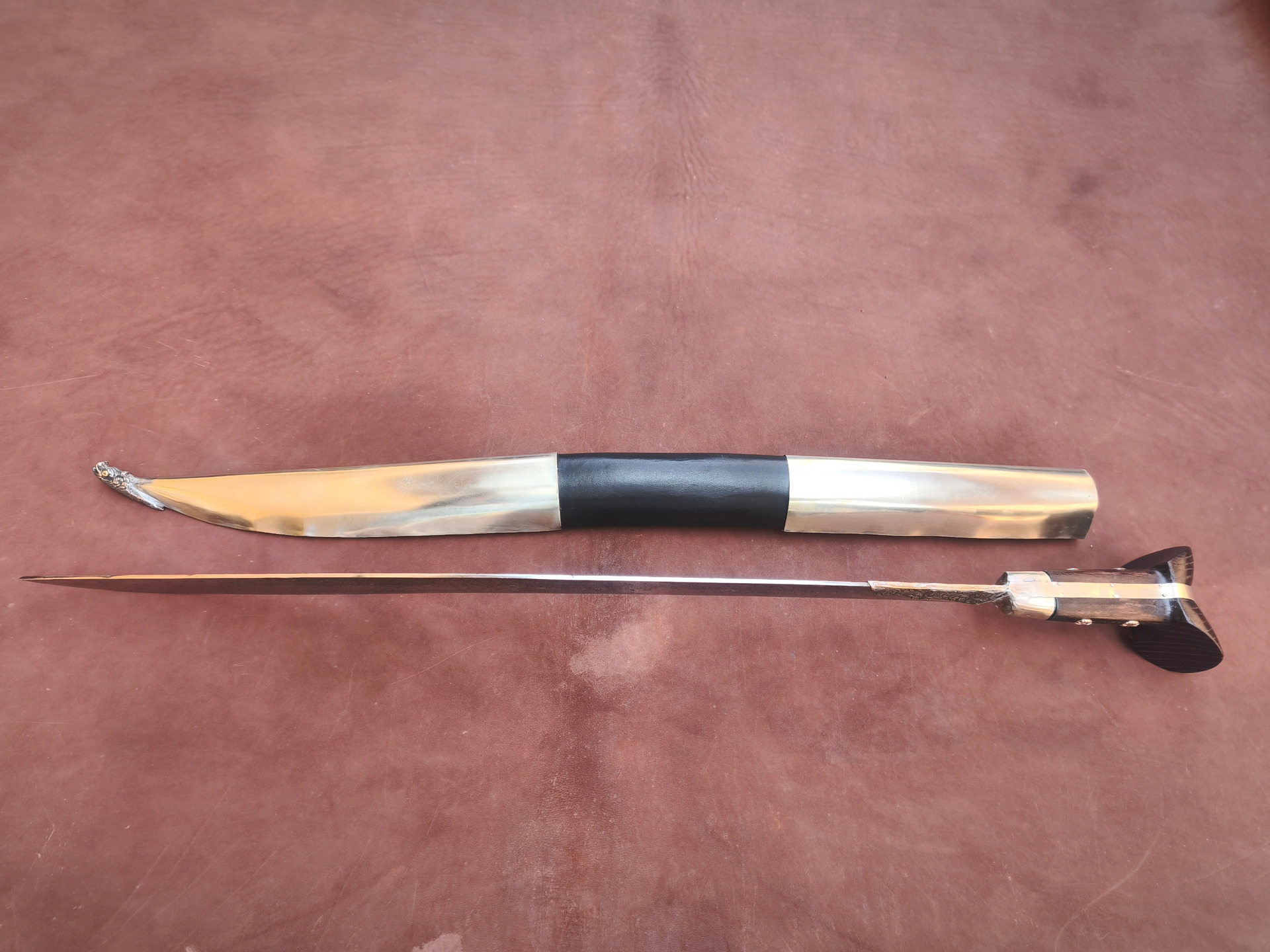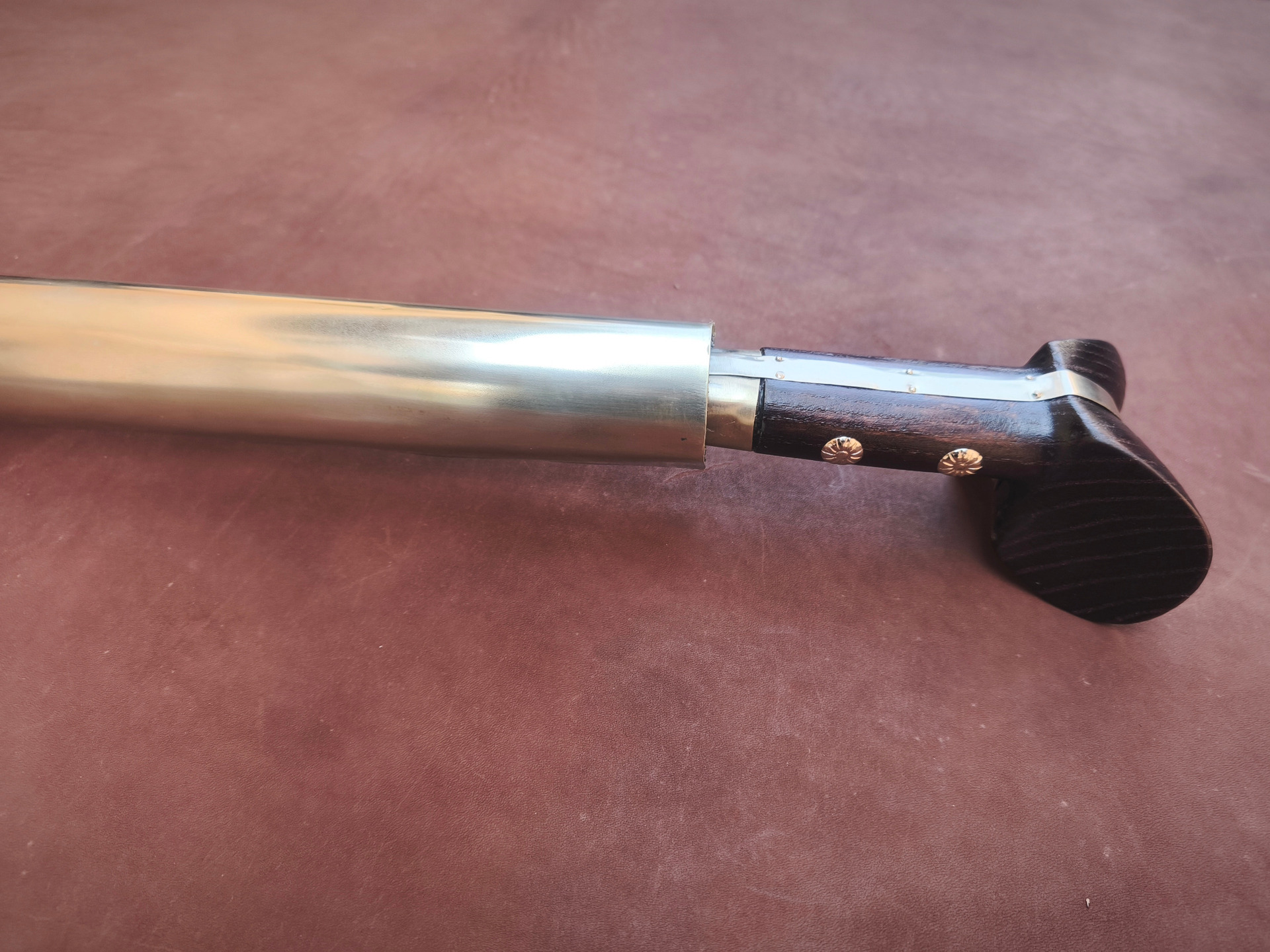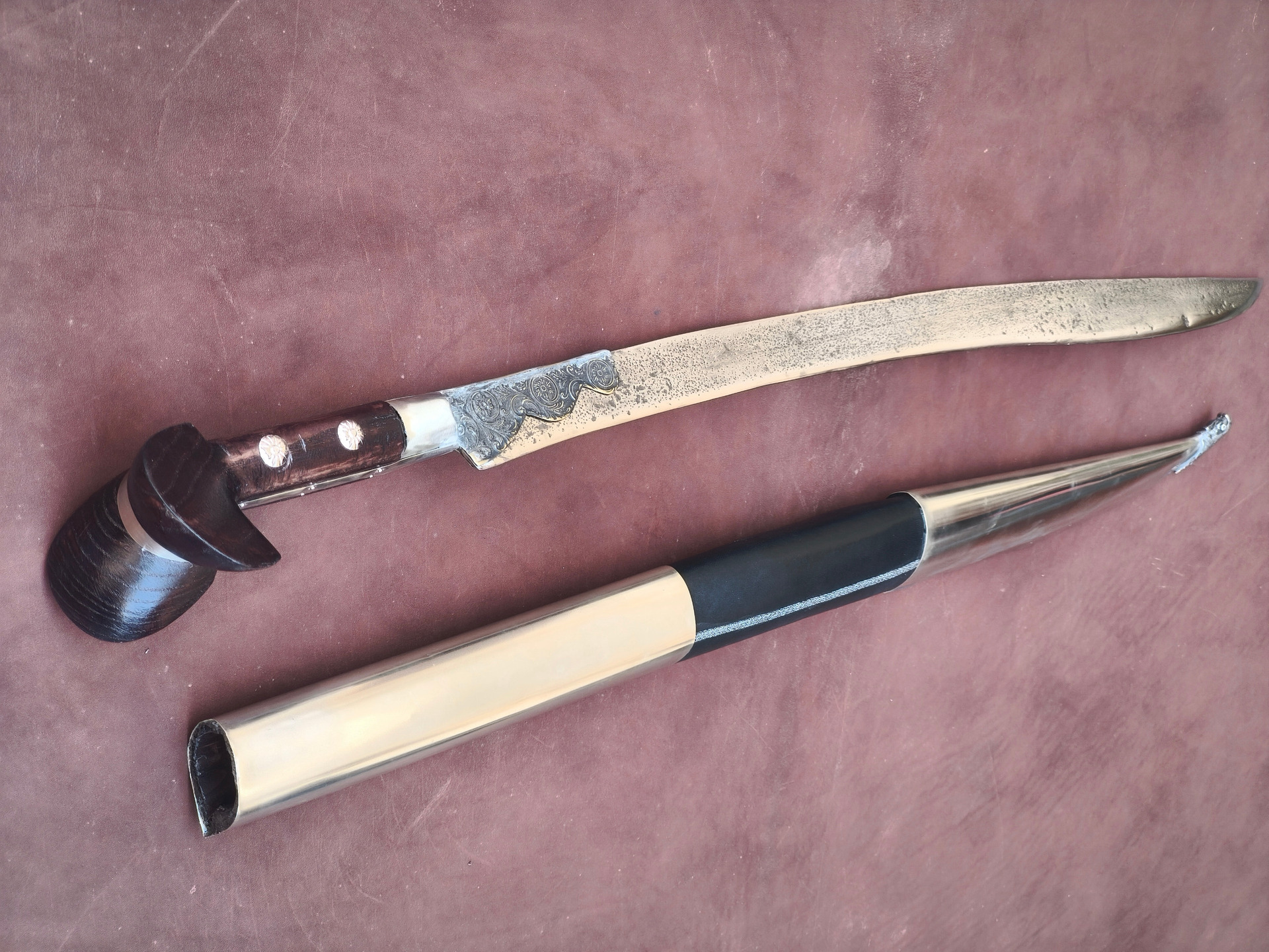 Faithful reproduction of a traditional yatagan, inspired by the weapons used during the Greek Revolution. Handmade construction with detailed forging and careful decoration.