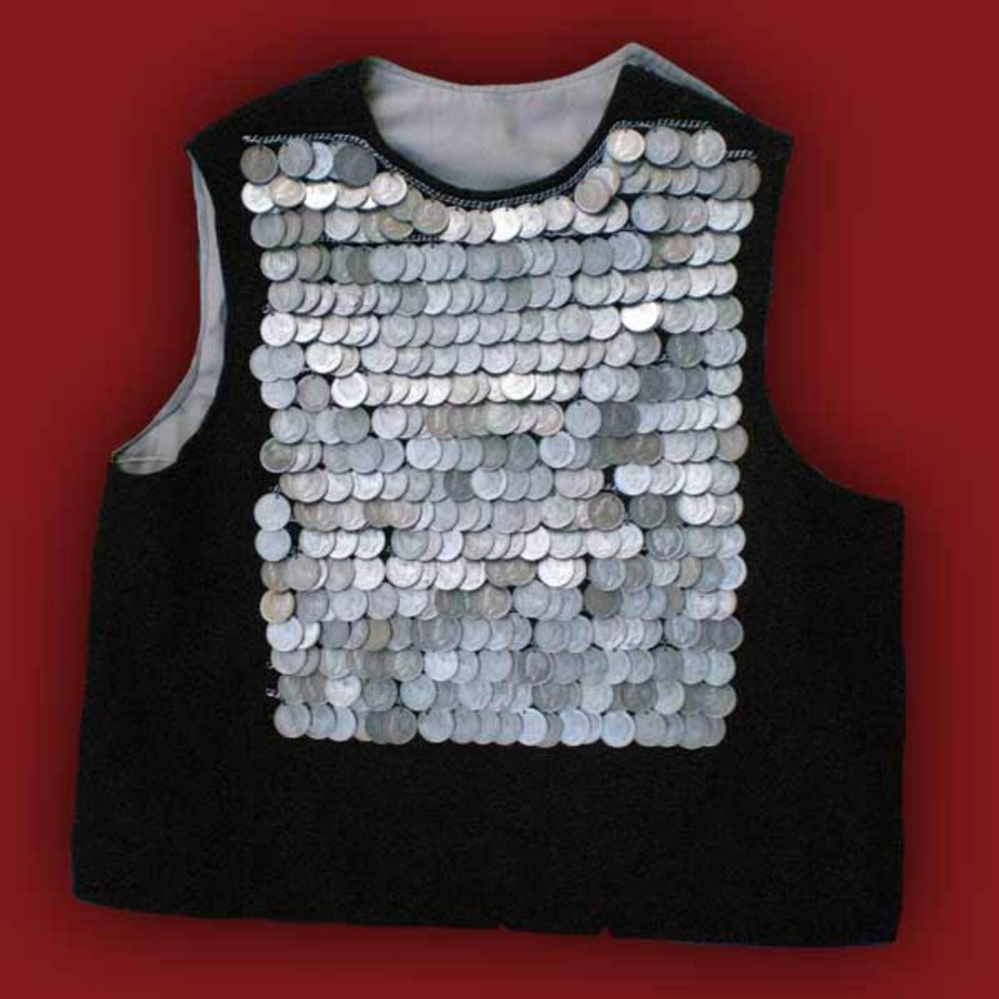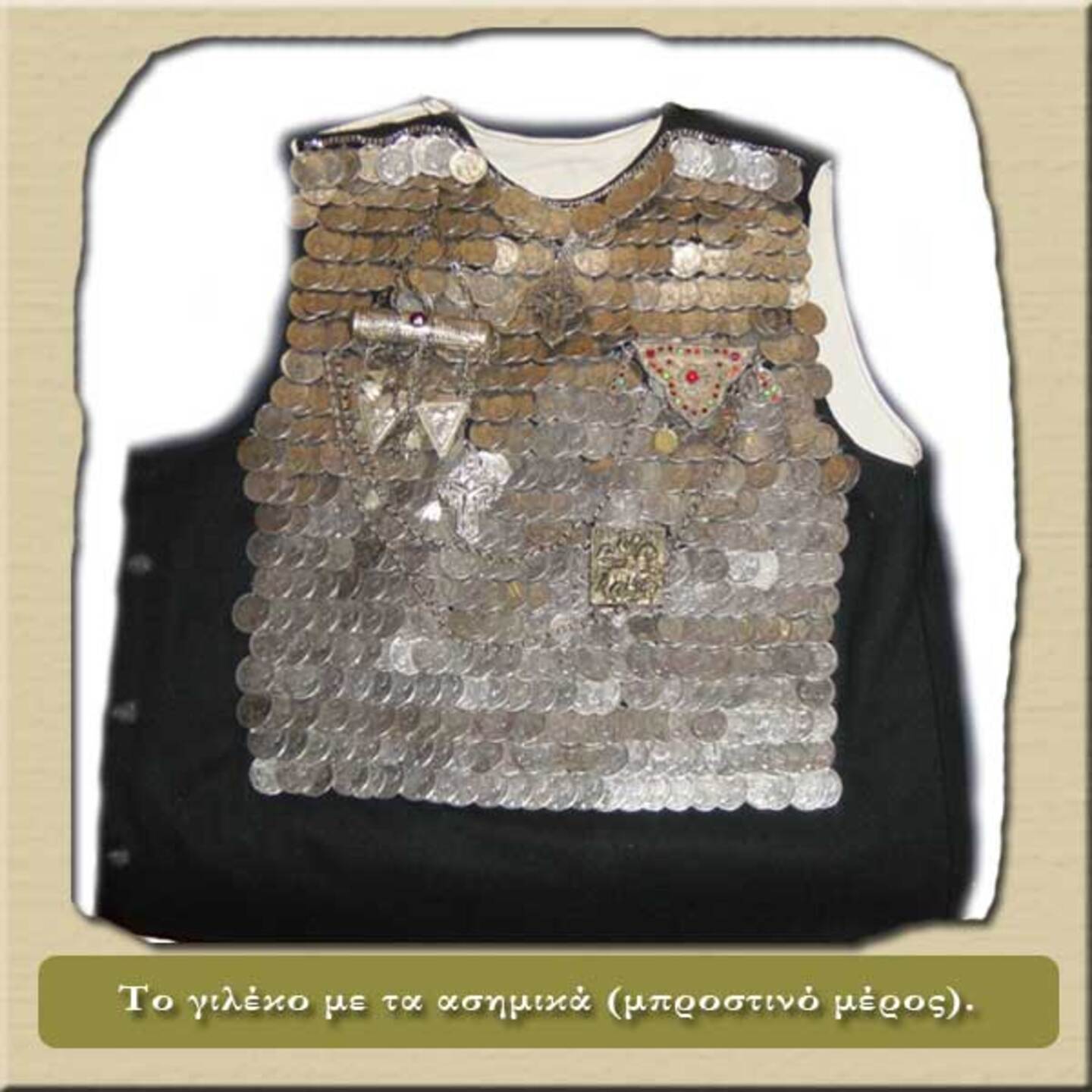 Perhaps the most characteristic accessory of the Janissary/Boula costume. Made of excellent quality woolen felt. Chains are sewn on its entire front surface, one link at a time, on which the coins are supported, which are hung with rings. Inside there is a thick brown lining to better hold its overall weight. Usually the coins needed for a vest are 400-500. The price is for the chest only.