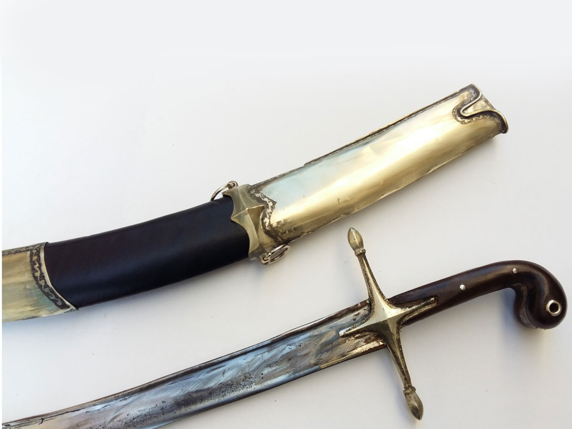 A precise reproduction of a pala (sword) used by the chieftains of the Peloponnese in the revolution against the Ottoman Empire. Handcrafted, forged from steel, based on an old traditional design (orneki) from our workshop.