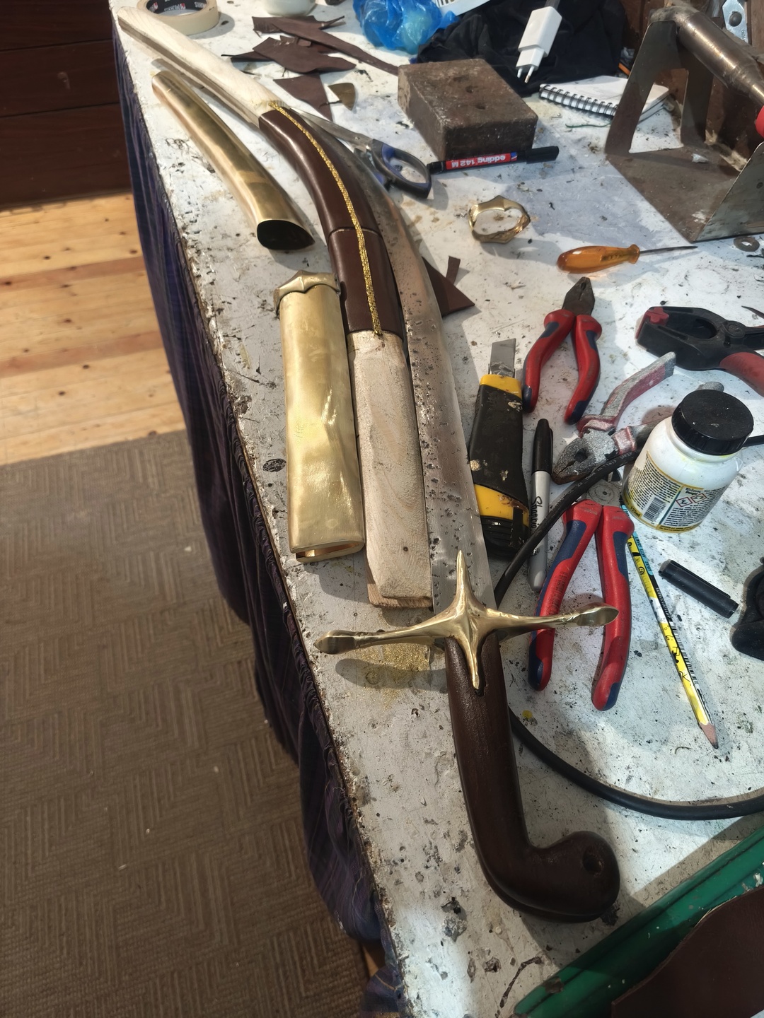 | Scabbard | Wood core with leather covering and metal fittings |